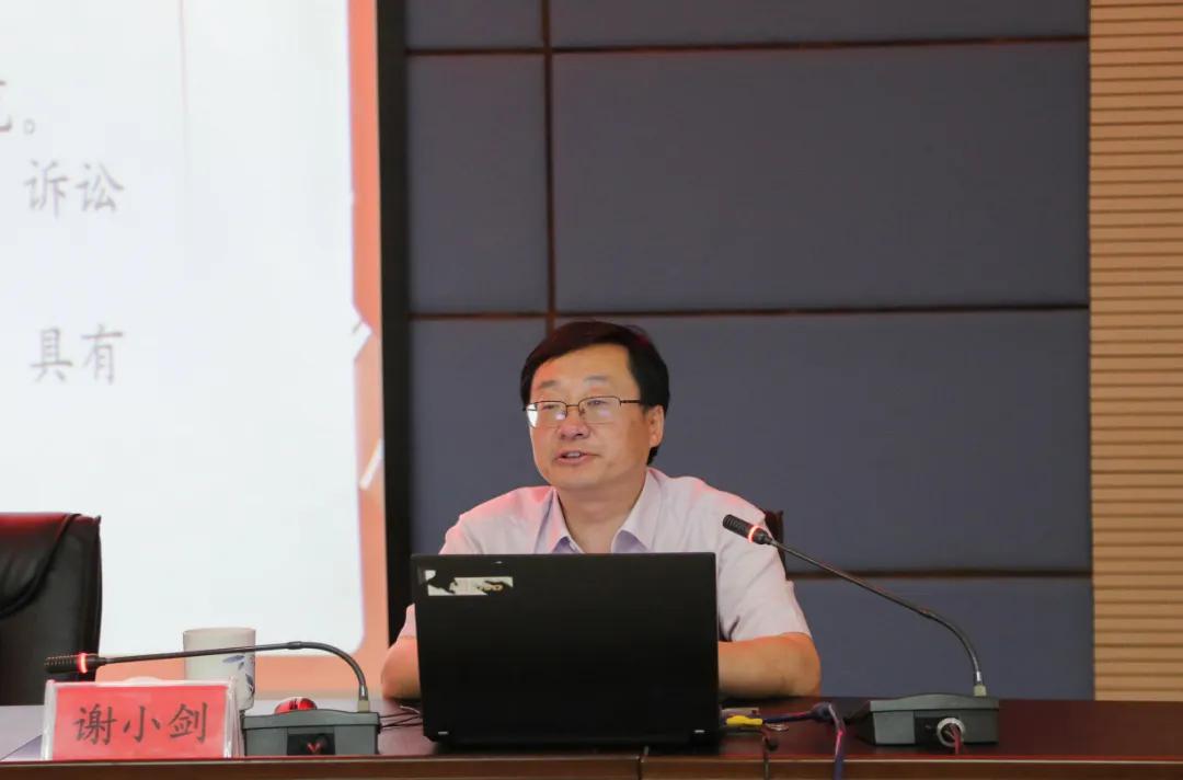 为深入贯彻落实最高检“高质效办好每一个案件”要求,着力提升全市检察机关业务能力与水平,9月19日,市检察院举办2025年第二期“九检大讲堂”专题讲座。邀请江西财经大学法治政府研究中心主任、博士生导师谢小剑教授作专题辅导。讲座以视频形式开至各基层检察院,全市检察人员参加。